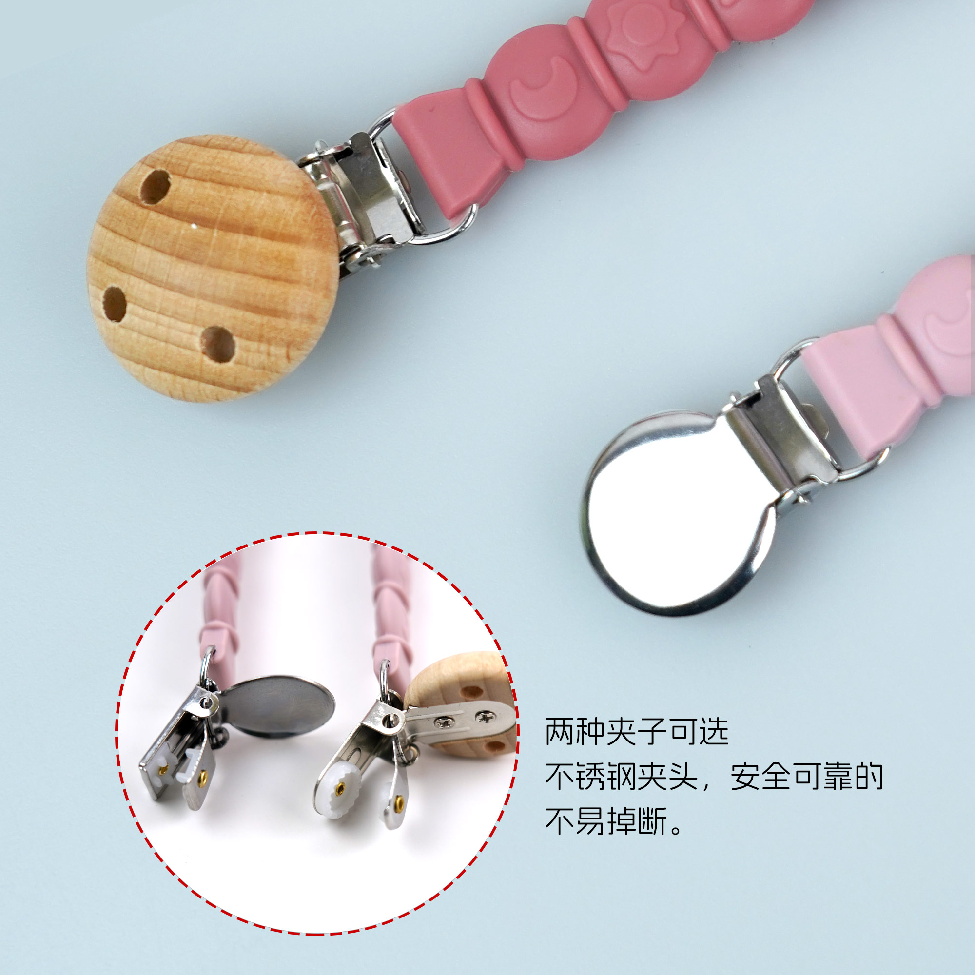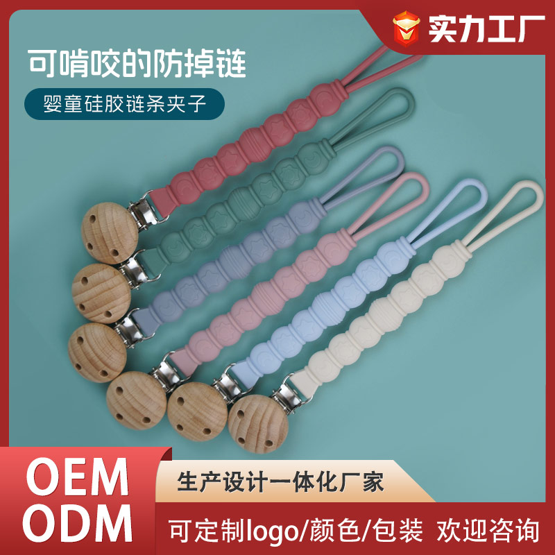 防掉鏈硅膠奶嘴鏈 嬰兒食品級可水煮防掉鏈牙膠